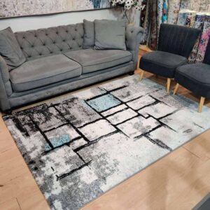 שטיח בדוגמת אבסטרקט במרקם רך ונעים , קל לניקיון ושאיבה.